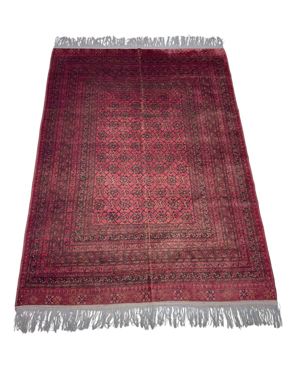 Enhance your space with this hand-knotted traditional area rug, crafted by Afghan artisans using rich Red, Black hues. This area rug is perfect for living rooms, bedrooms, or offices, offering durability and warmth through premium wool and heritage design. Each piece is one-of-a-kind and carries the story of traditional craftsmanship.