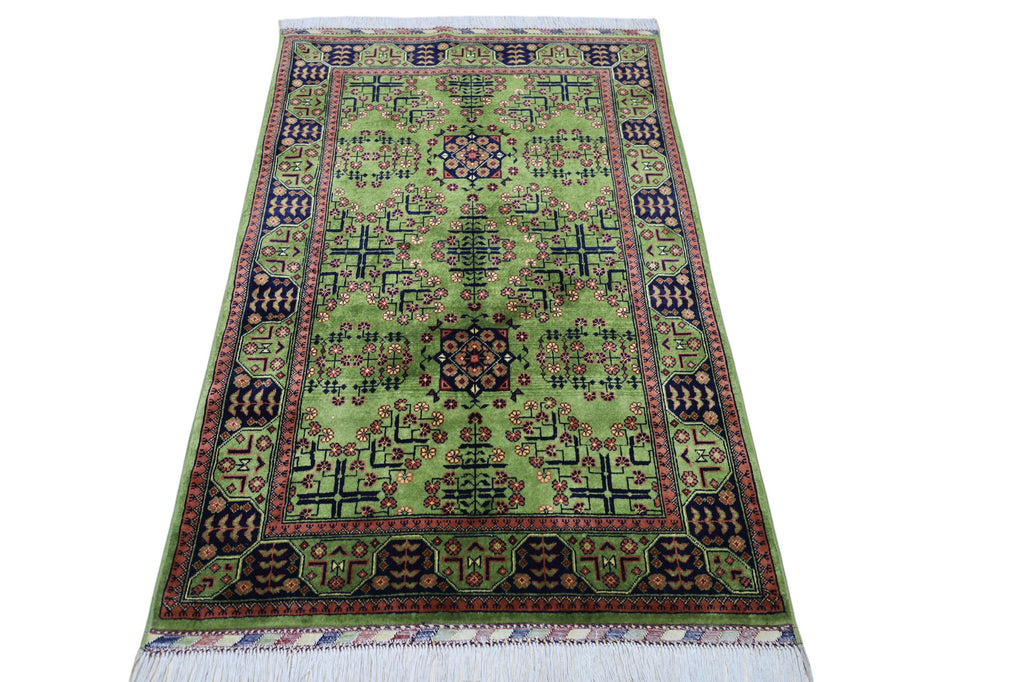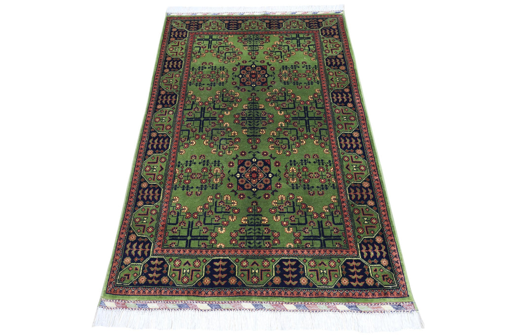 This hand-knotted bukharai rug features rich color tones and traditional Afghan weaving. Made with high-quality wool on a cotton foundation, it offers both beauty and durability. Ideal for adding character and texture to entryways, living rooms, or studies.