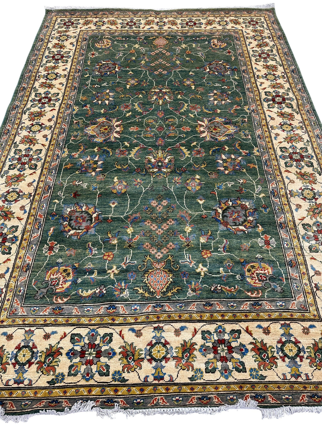 This hand-knotted kazak sultani rug features rich color tones and traditional Afghan weaving. Made with high-quality wool on a cotton foundation, it offers both beauty and durability. Ideal for adding character and texture to entryways, living rooms, or studies.