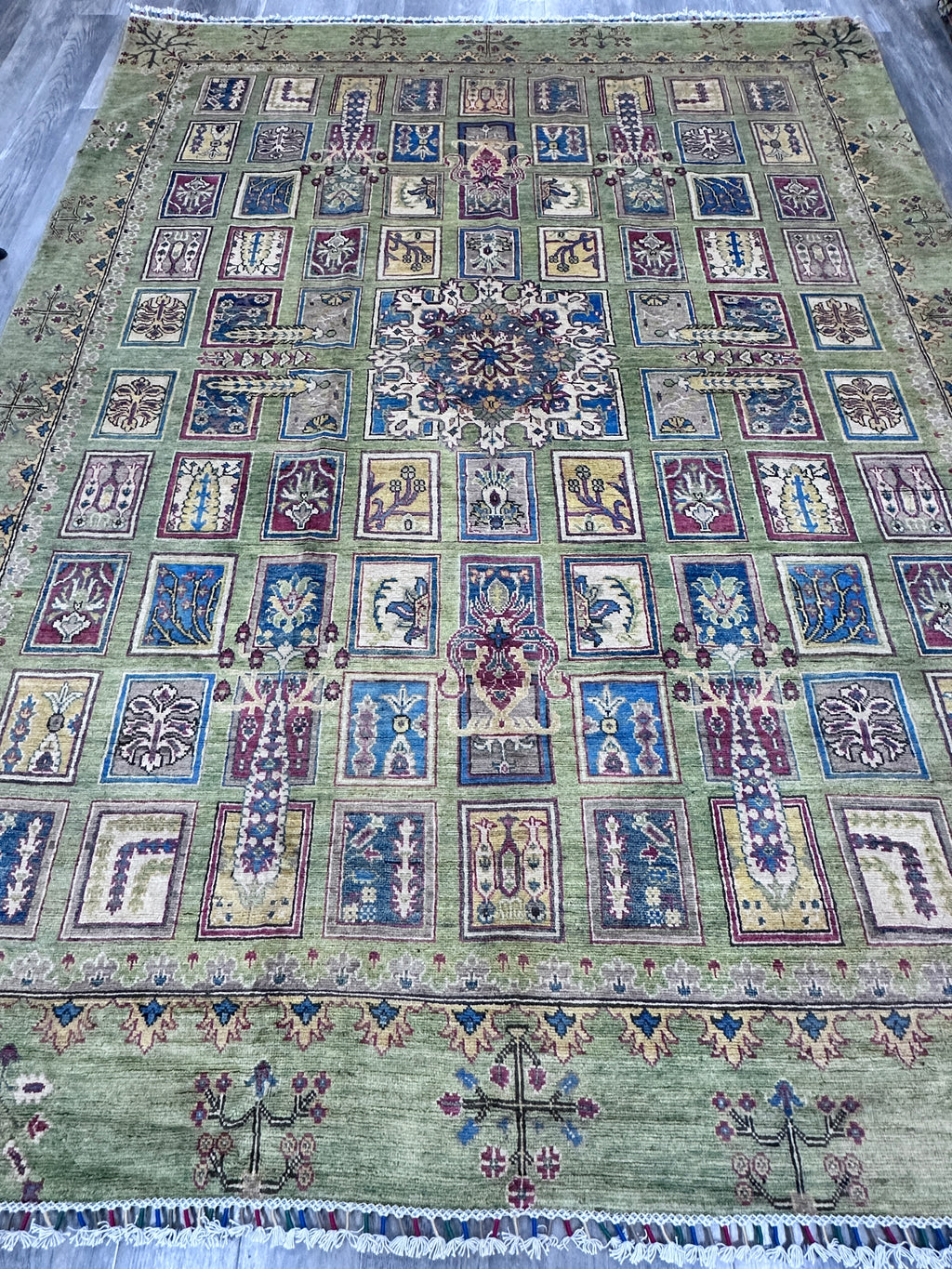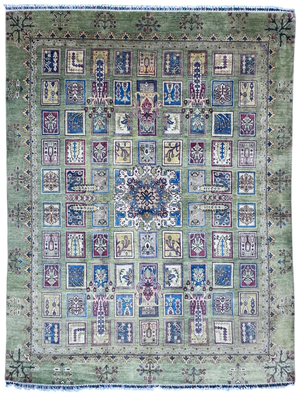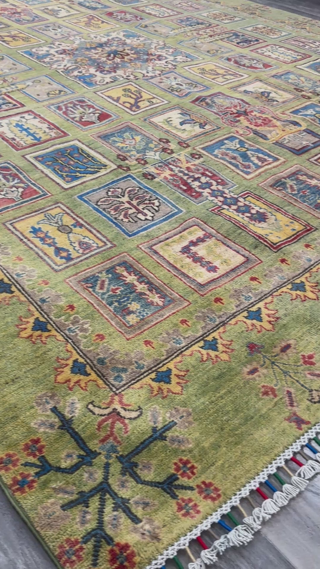 This hand-knotted kazak rug features rich color tones and traditional Afghan weaving. Made with high-quality wool on a cotton foundation, it offers both beauty and durability. Ideal for adding character and texture to entryways, living rooms, or studies.