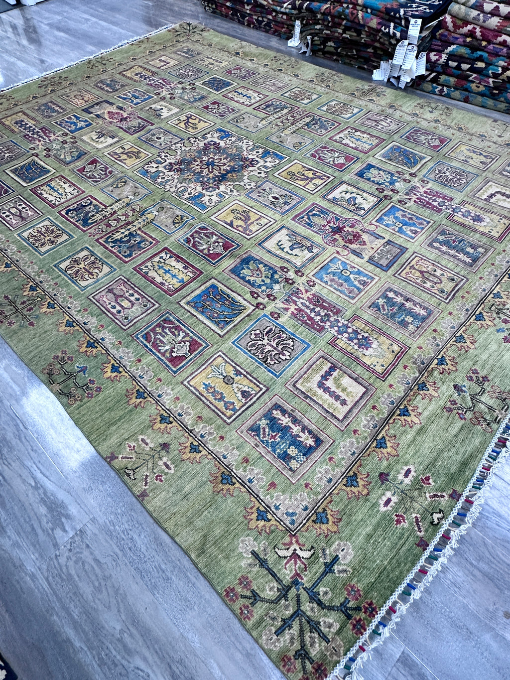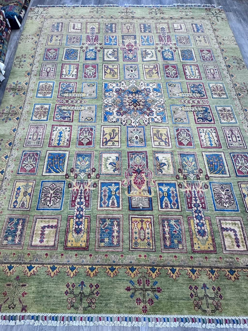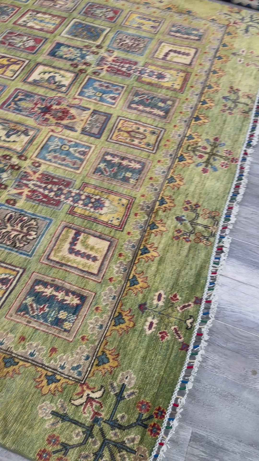 This hand-knotted kazak rug features rich color tones and traditional Afghan weaving. Made with high-quality wool on a cotton foundation, it offers both beauty and durability. Ideal for adding character and texture to entryways, living rooms, or studies.