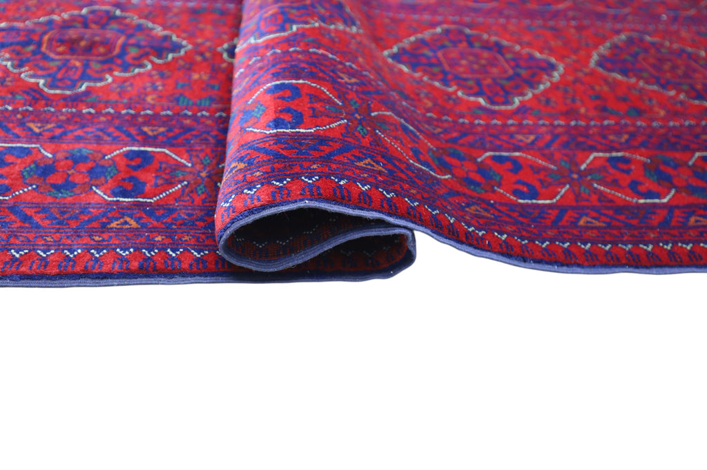 This hand-knotted khal muhammadi rug features rich color tones and traditional Afghan weaving. Made with high-quality wool on a cotton foundation, it offers both beauty and durability. Ideal for adding character and texture to entryways, living rooms, or studies.