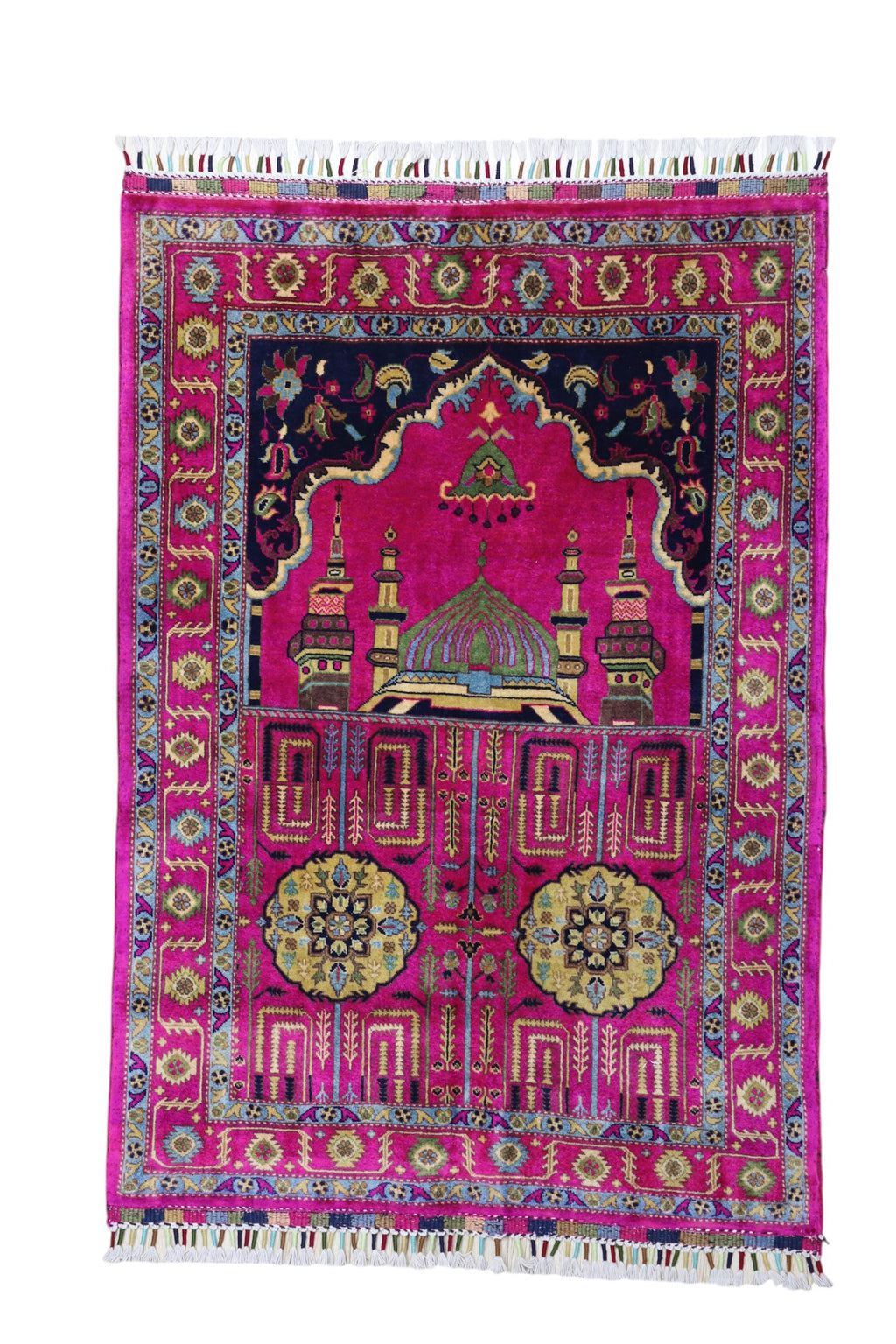 This hand-knotted prayer rug rug features rich color tones and traditional Afghan weaving. Made with high-quality wool on a cotton foundation, it offers both beauty and durability. Ideal for adding character and texture to entryways, living rooms, or studies.