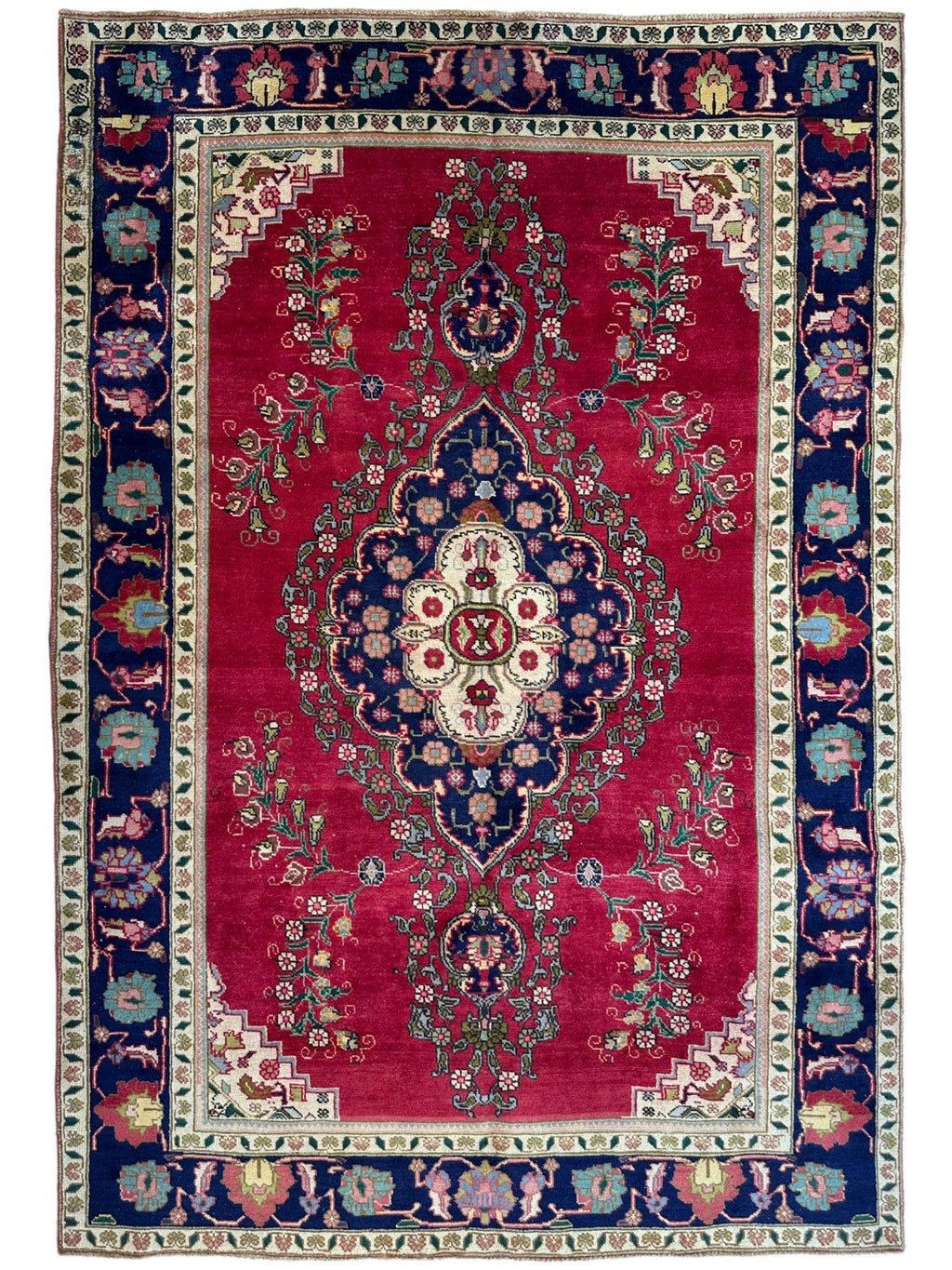 Hand Knotted Vintage Tabriz Wool 6’4” x 9’2” Area Rug