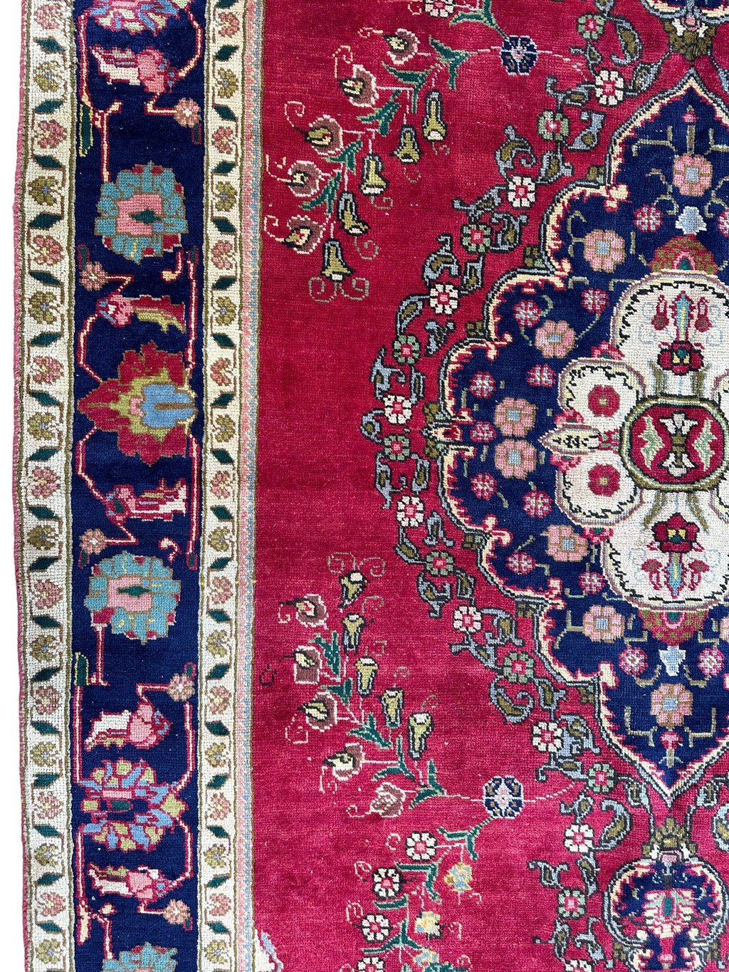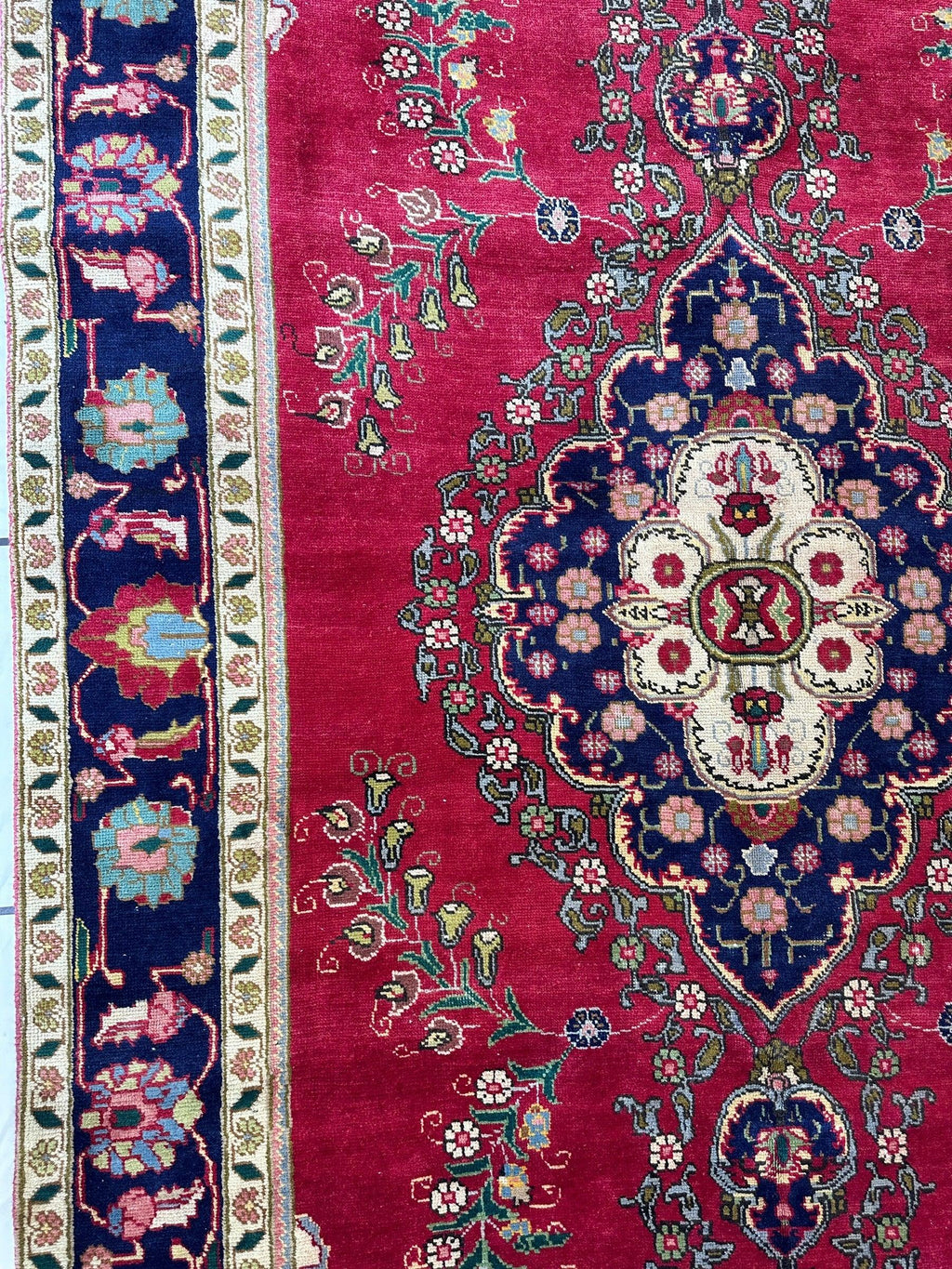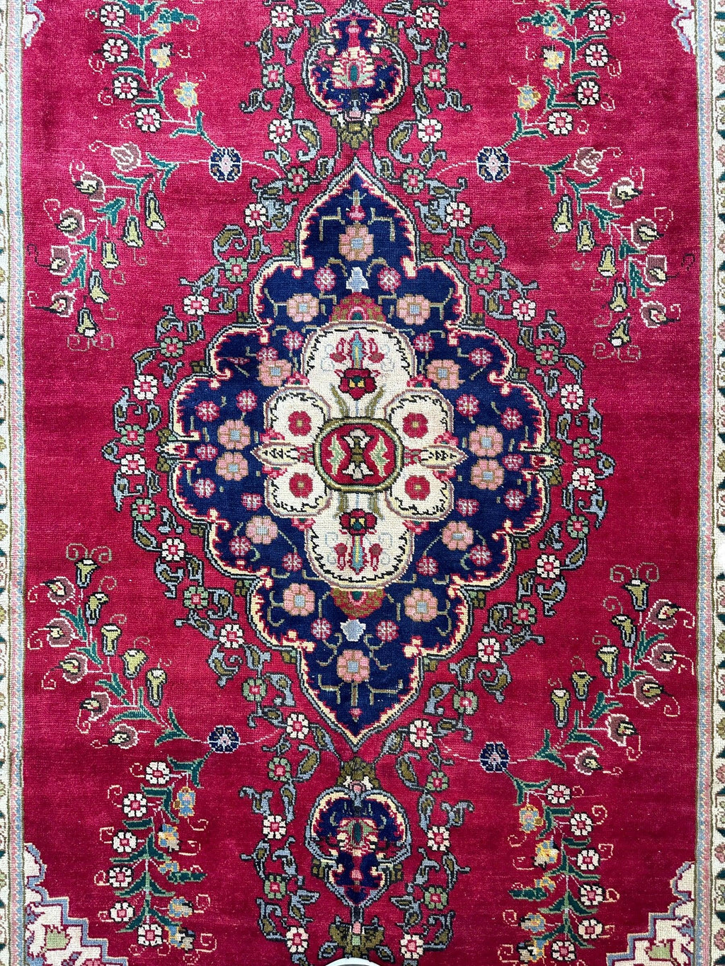 This is a beautiful and high-quality rug made of hand-knotted wool. The Tabriz style originates from the city of Tabriz in northwestern Iran and is one of the most sought-after styles in Persian rugs. With proper care, this rug can last for many years and become a treasured family heirloom.