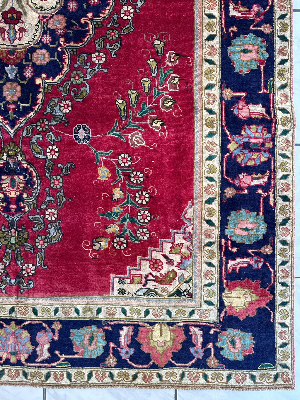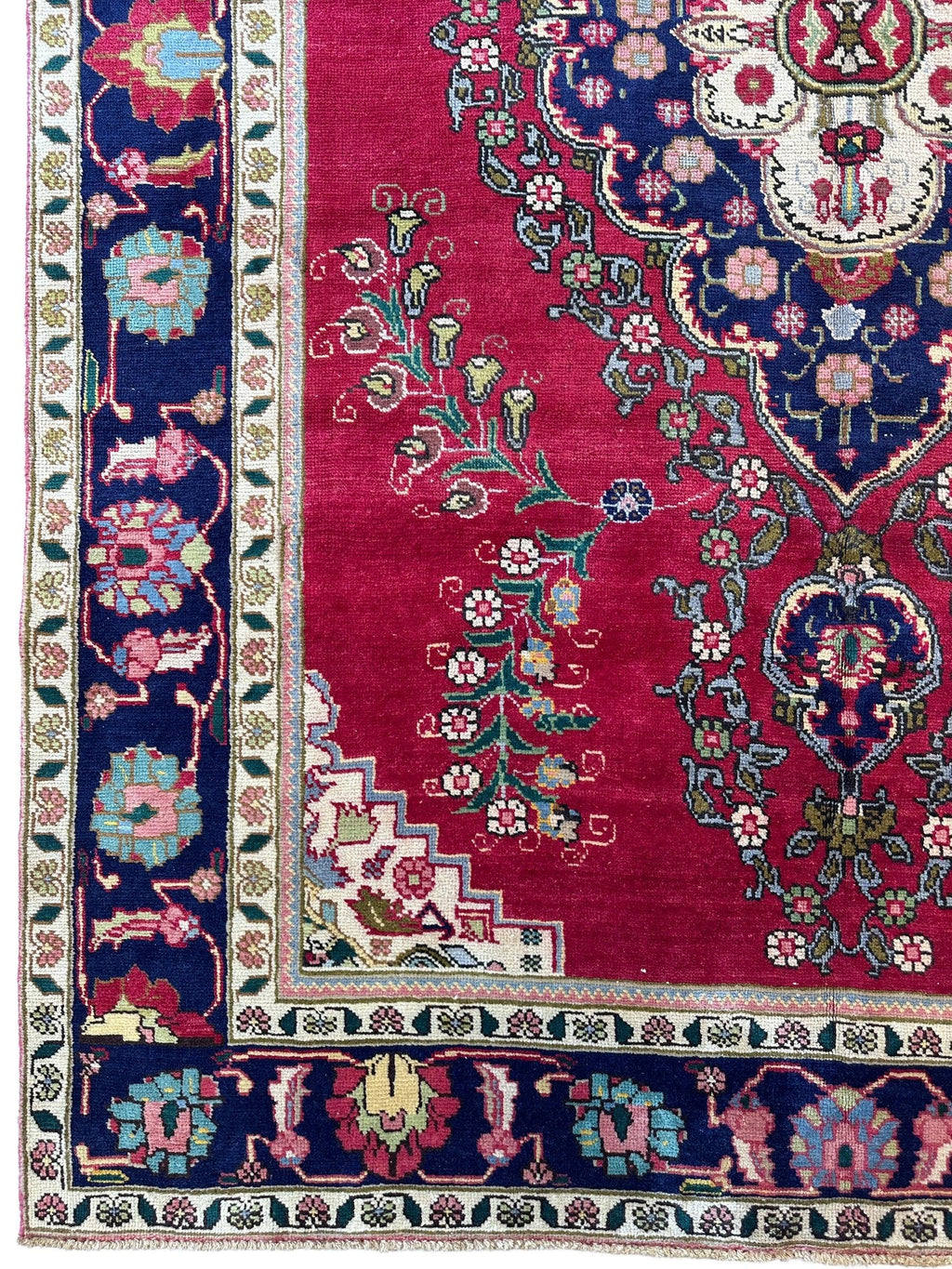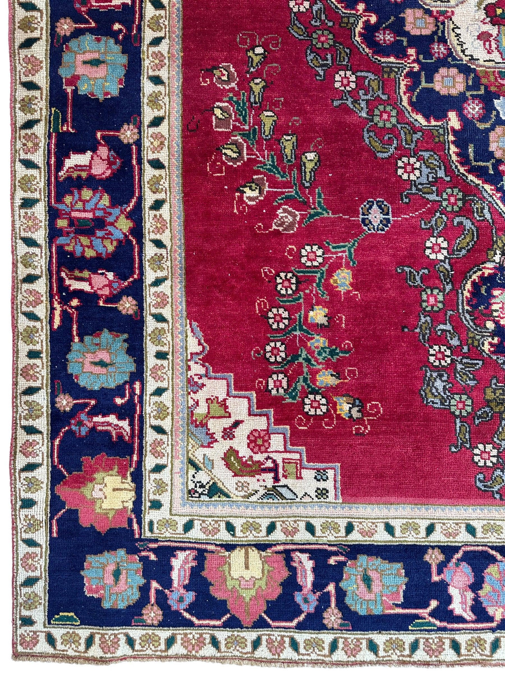 This is a beautiful and high-quality rug made of hand-knotted wool. The Tabriz style originates from the city of Tabriz in northwestern Iran and is one of the most sought-after styles in Persian rugs. With proper care, this rug can last for many years and become a treasured family heirloom.