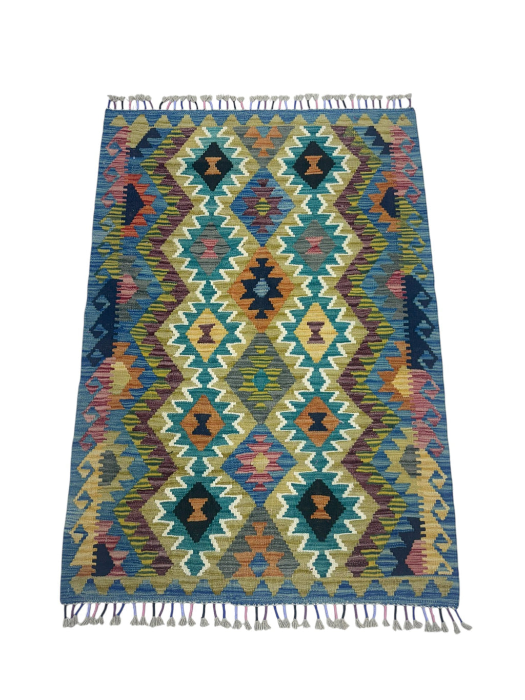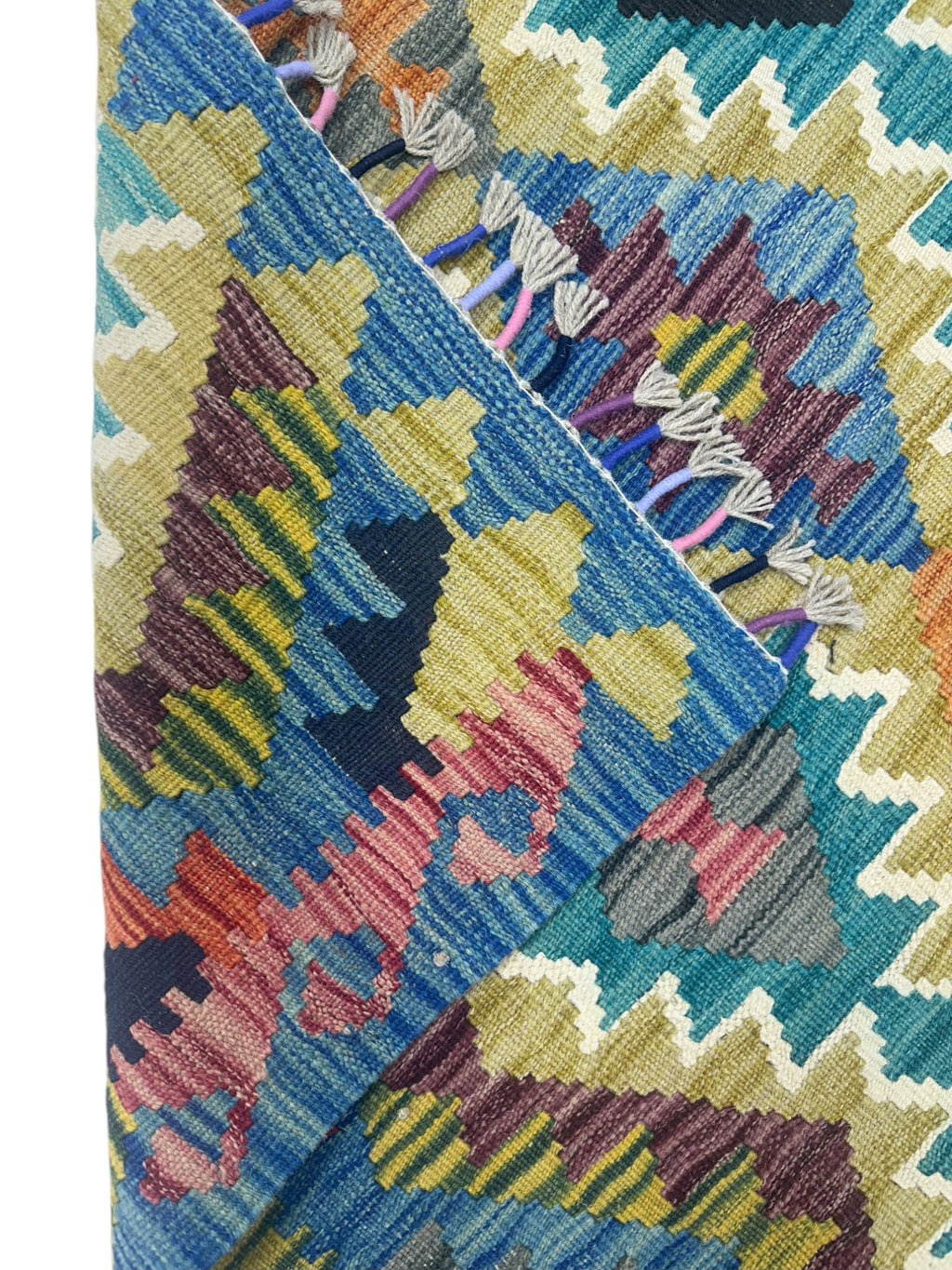 This newly made, hand-woven Kilim rug was hand-selected in Afghanistan to ensure the highest quality and authenticity. Each piece embodies generations of traditional flatweave craftsmanship. Lightweight and reversible, it is ideal for layering or use in high-traffic areas such as entryways, living rooms, or offices.