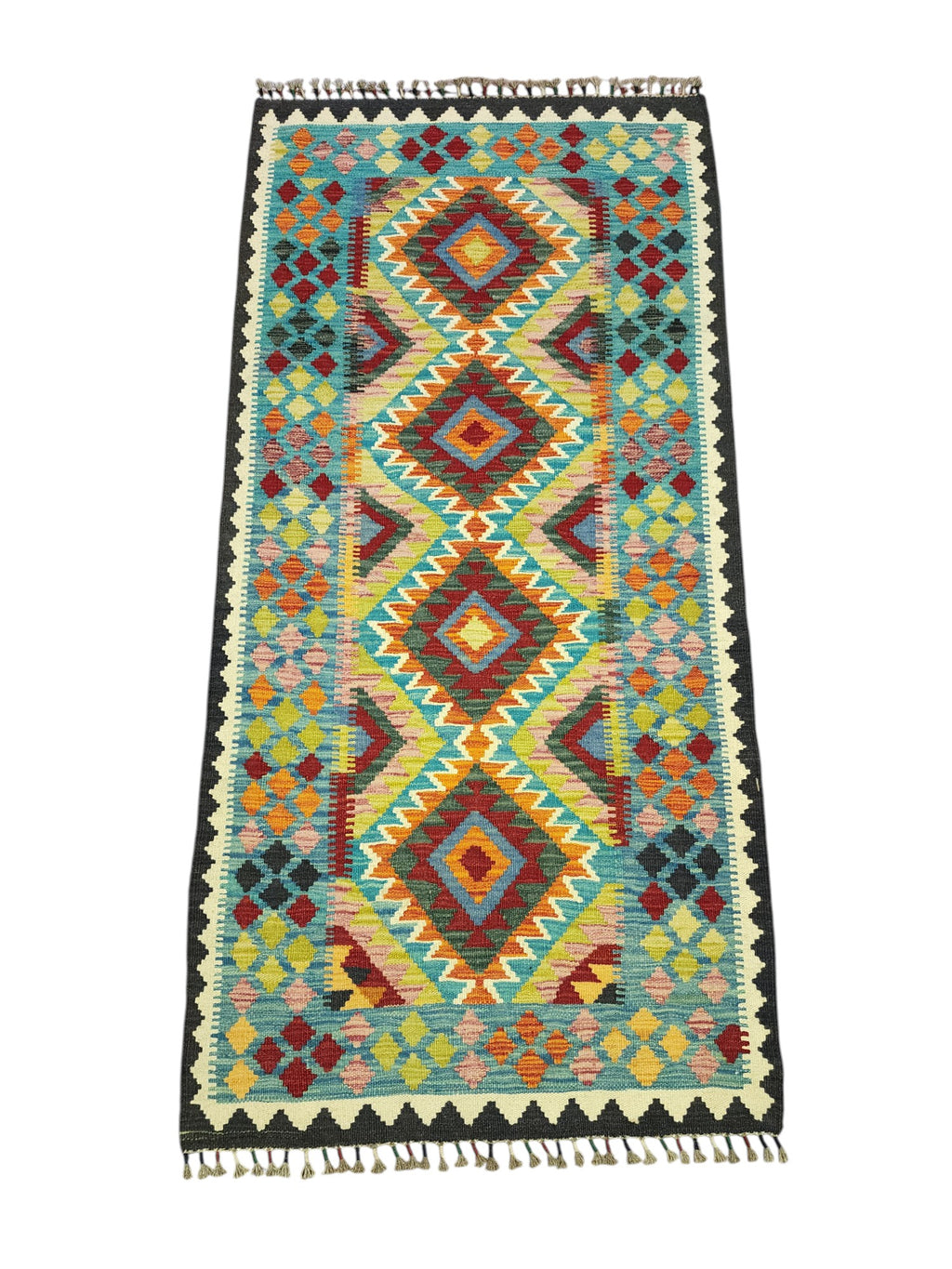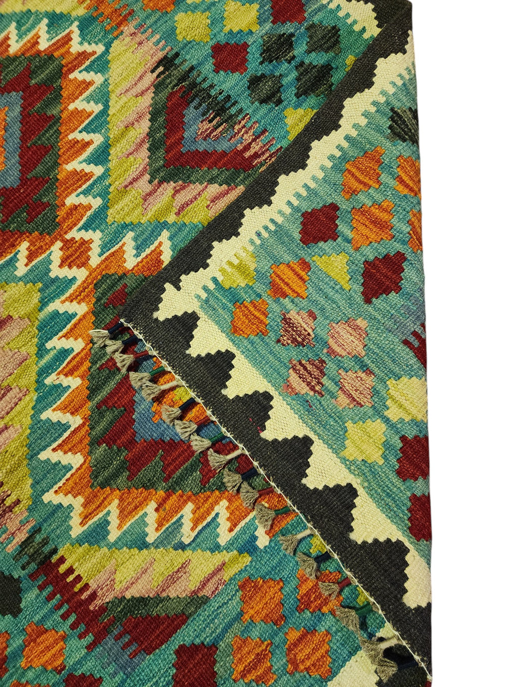 This newly made, hand-woven Kilim rug was hand-selected in Afghanistan to ensure the highest quality and authenticity. Each piece embodies generations of traditional flatweave craftsmanship. Lightweight and reversible, it is ideal for layering or use in high-traffic areas such as entryways, living rooms, or offices.