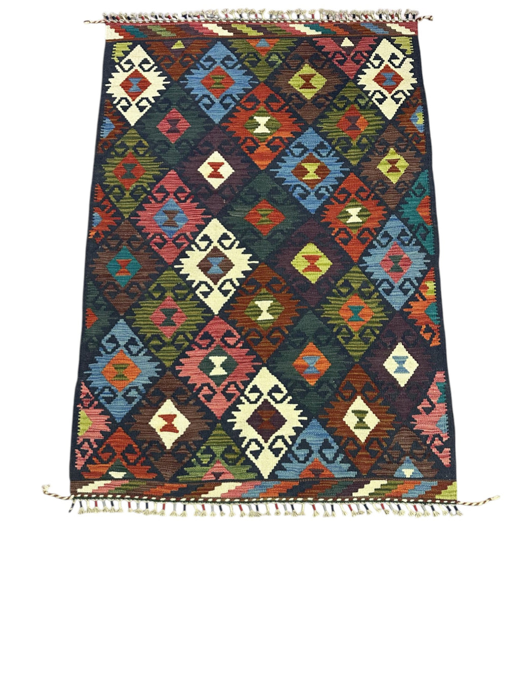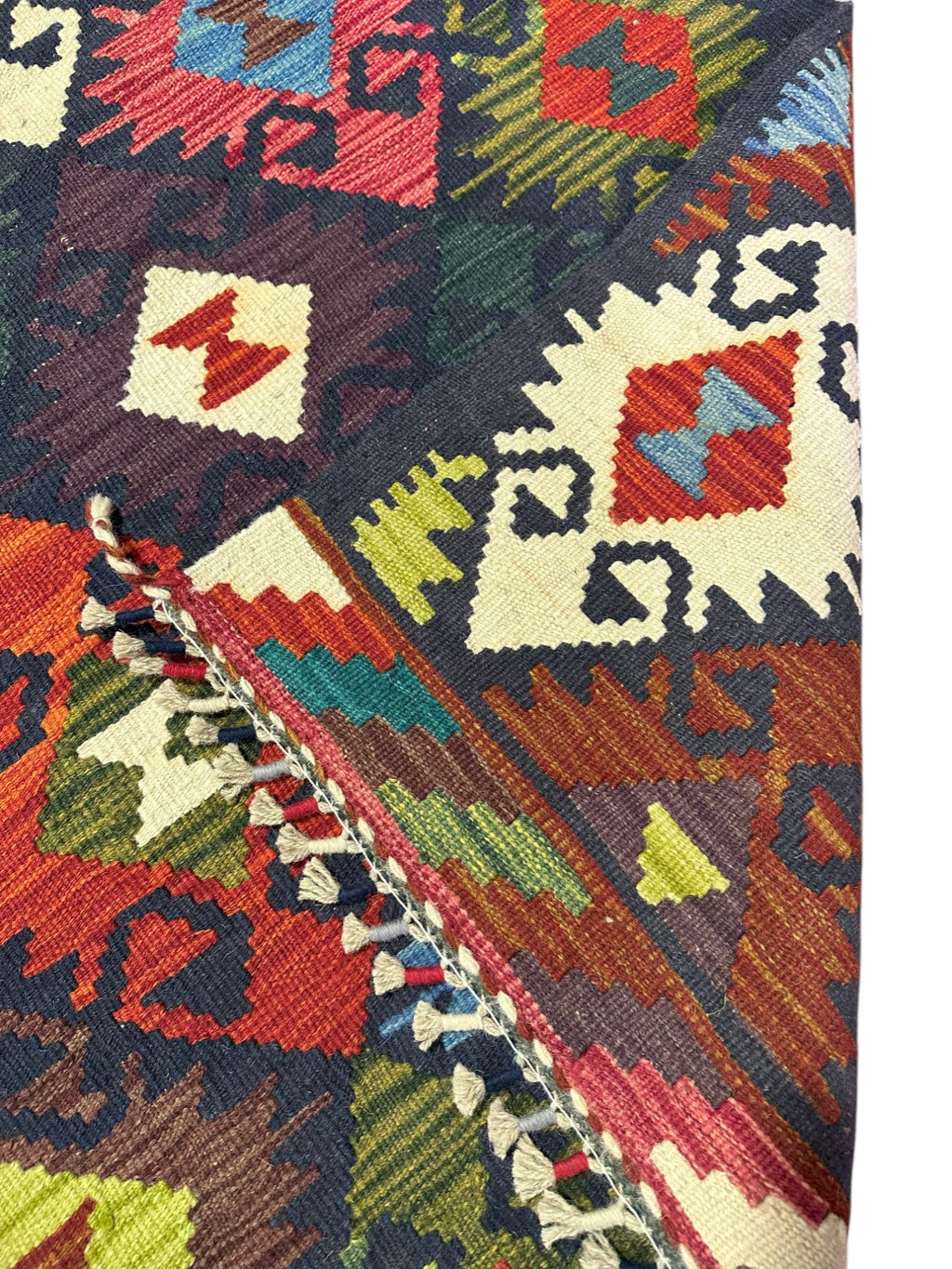 This newly made, hand-woven Kilim rug was hand-selected in Afghanistan to ensure the highest quality and authenticity. Each piece embodies generations of traditional flatweave craftsmanship. Lightweight and reversible, it is ideal for layering or use in high-traffic areas such as entryways, living rooms, or offices.