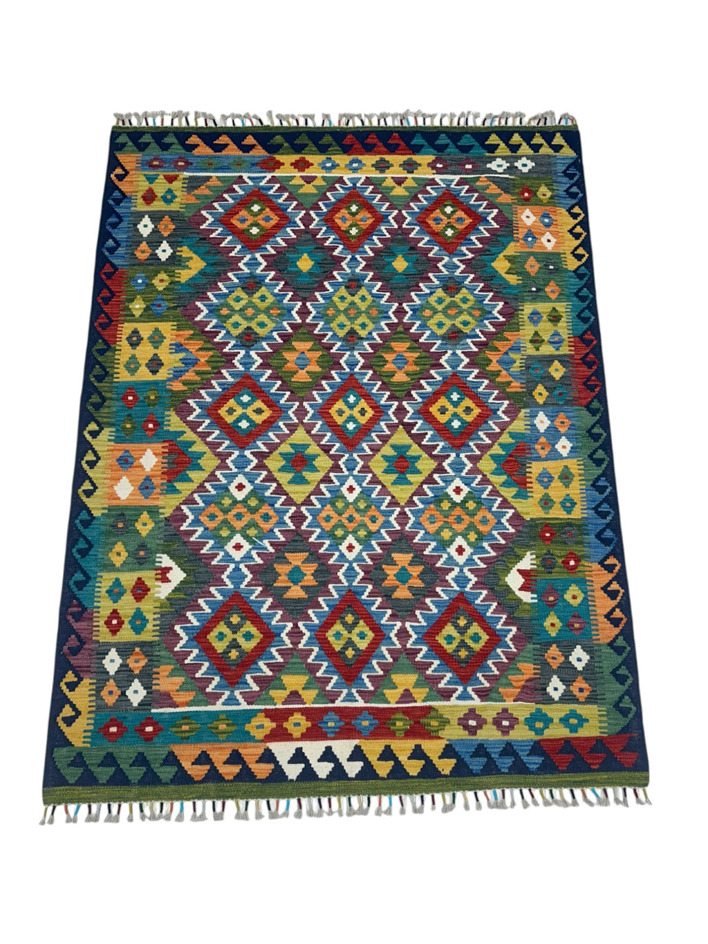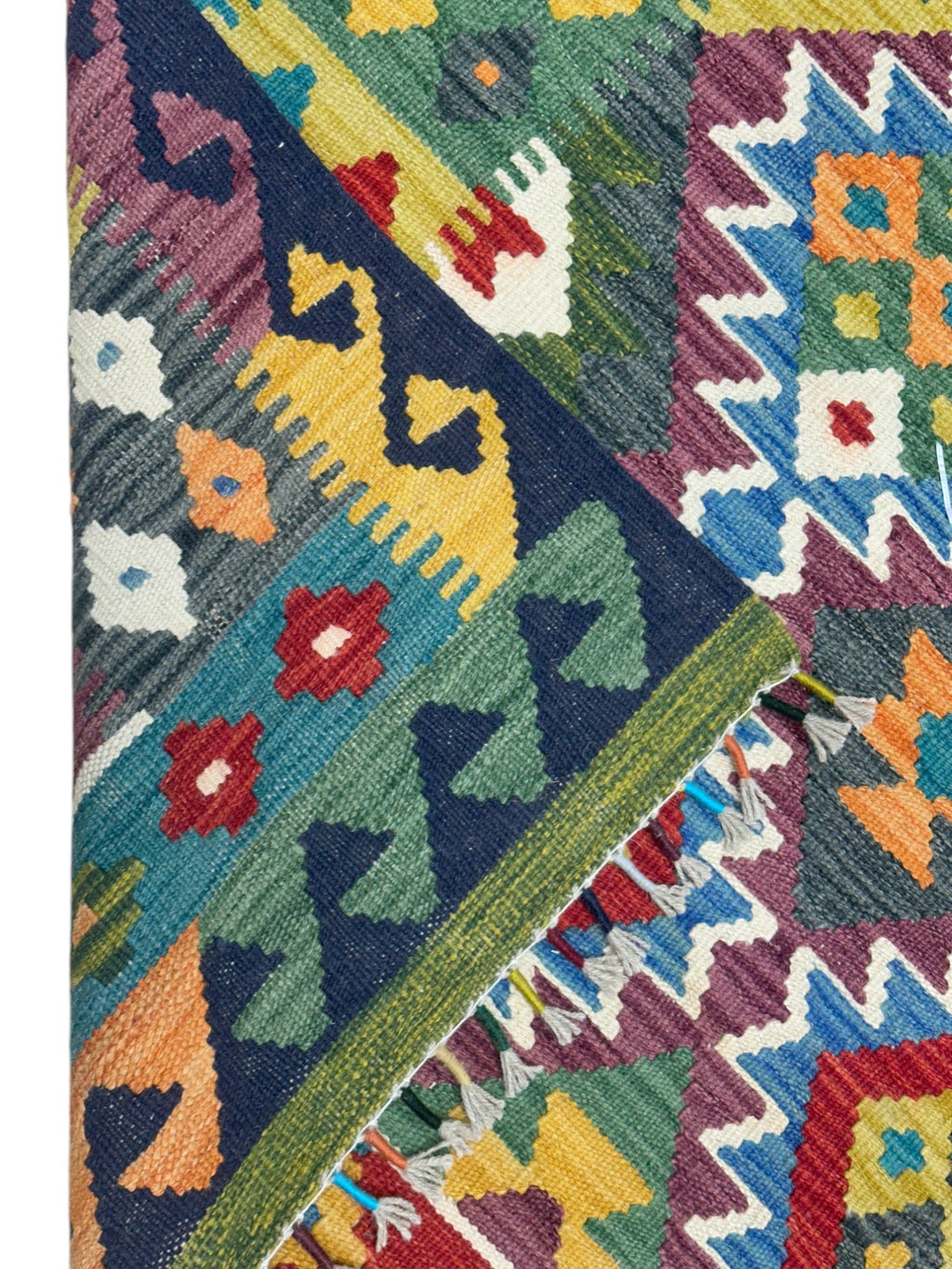 This newly made, hand-woven Kilim rug was hand-selected in Afghanistan to ensure the highest quality and authenticity. Each piece embodies generations of traditional flatweave craftsmanship. Lightweight and reversible, it is ideal for layering or use in high-traffic areas such as entryways, living rooms, or offices.