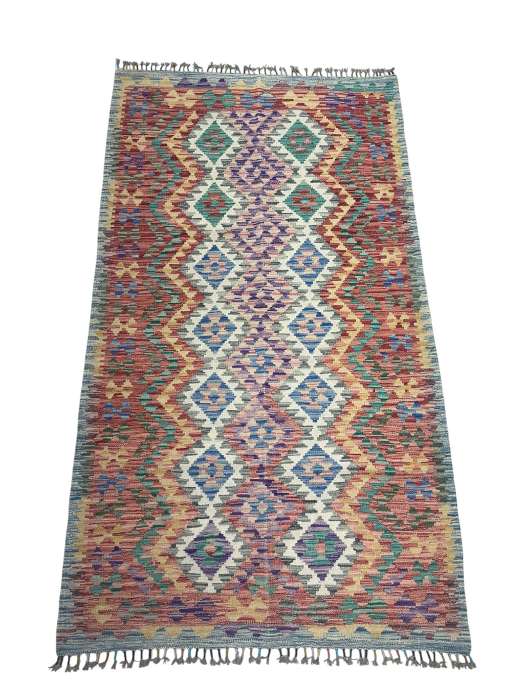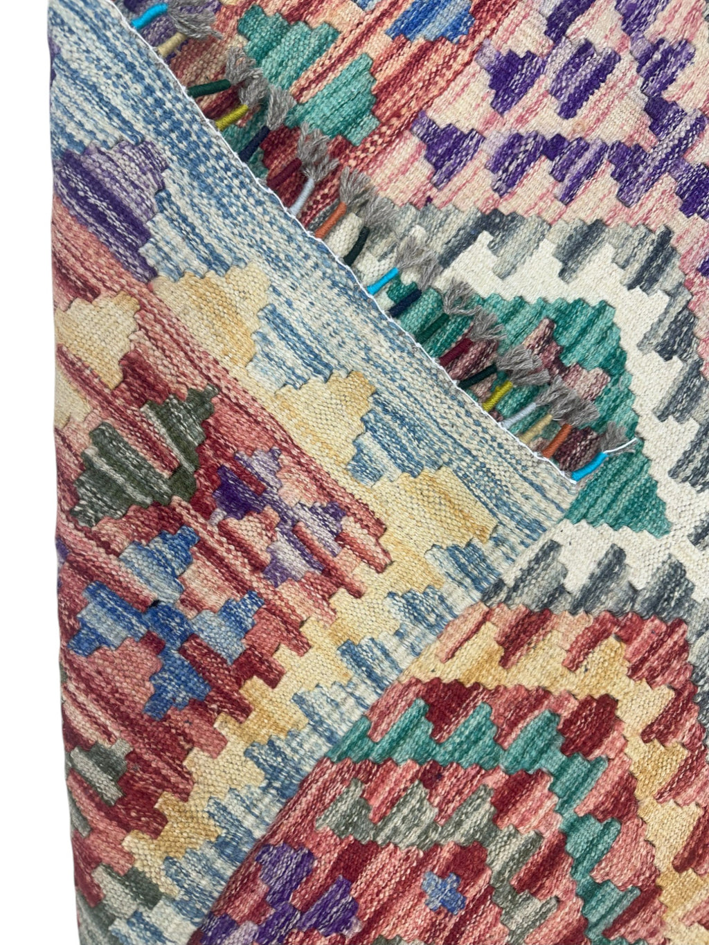 This newly made, hand-woven Kilim rug was hand-selected in Afghanistan to ensure the highest quality and authenticity. Each piece embodies generations of traditional flatweave craftsmanship. Lightweight and reversible, it is ideal for layering or use in high-traffic areas such as entryways, living rooms, or offices.
