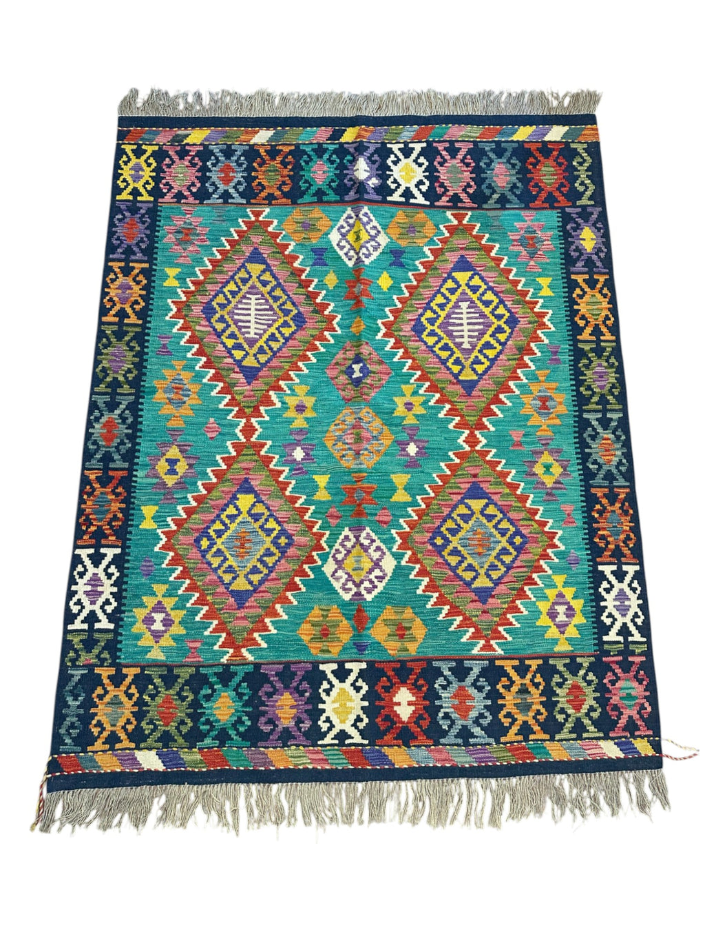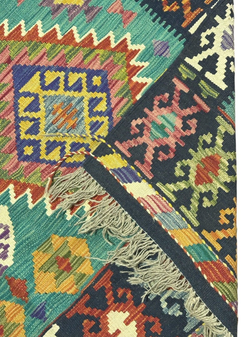 This newly made, hand-woven Kilim rug was hand-selected in Afghanistan to ensure the highest quality and authenticity. Each piece embodies generations of traditional flatweave craftsmanship. Lightweight and reversible, it is ideal for layering or use in high-traffic areas such as entryways, living rooms, or offices.