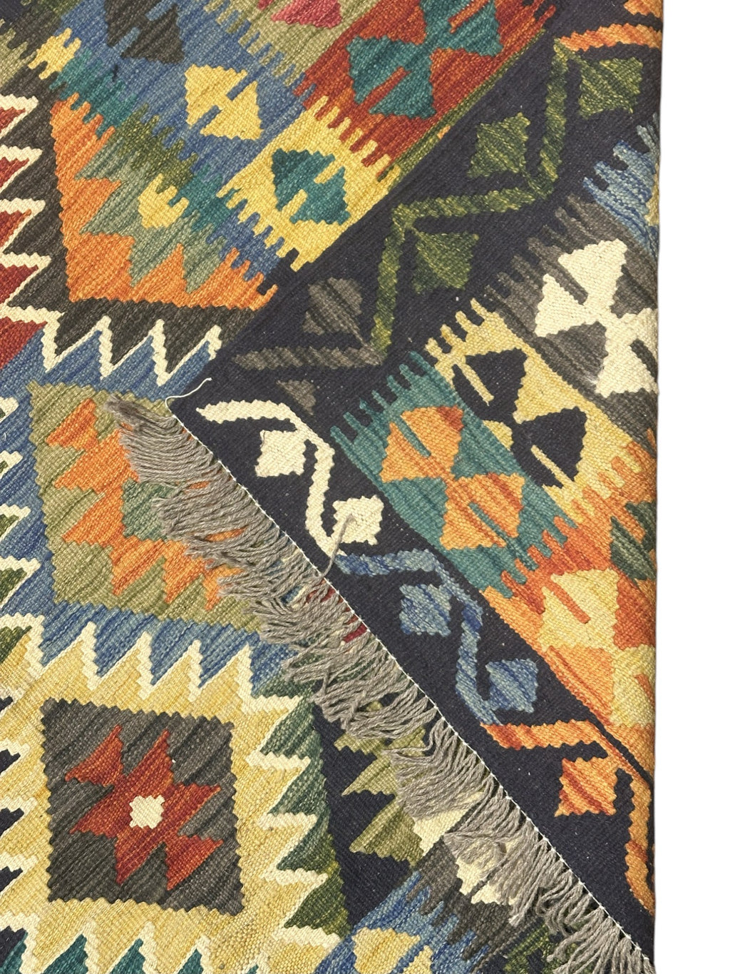 This newly made, hand-woven Kilim rug was hand-selected in Afghanistan to ensure the highest quality and authenticity. Each piece embodies generations of traditional flatweave craftsmanship. Lightweight and reversible, it is ideal for layering or use in high-traffic areas such as entryways, living rooms, or offices.