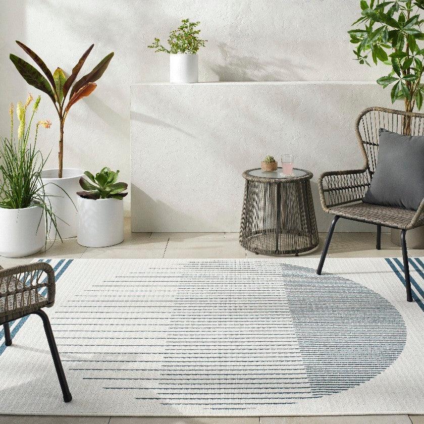 Make your outdoor space more inviting and comfortable with the Heathr Area Rug. Made of durable Polypropylene, this machine-woven rug is designed to withstand all kinds of weather and high traffic areas. It features a beautiful style that will look great in any space and no pile for easy maintenance. Plus, it's outdoor safe so you can use it on your patio or porch without worry. To make sure your rug lasts longer, we recommend using a rug pad (sold separately). When cleaning, simply hose off with water and hang to dry.