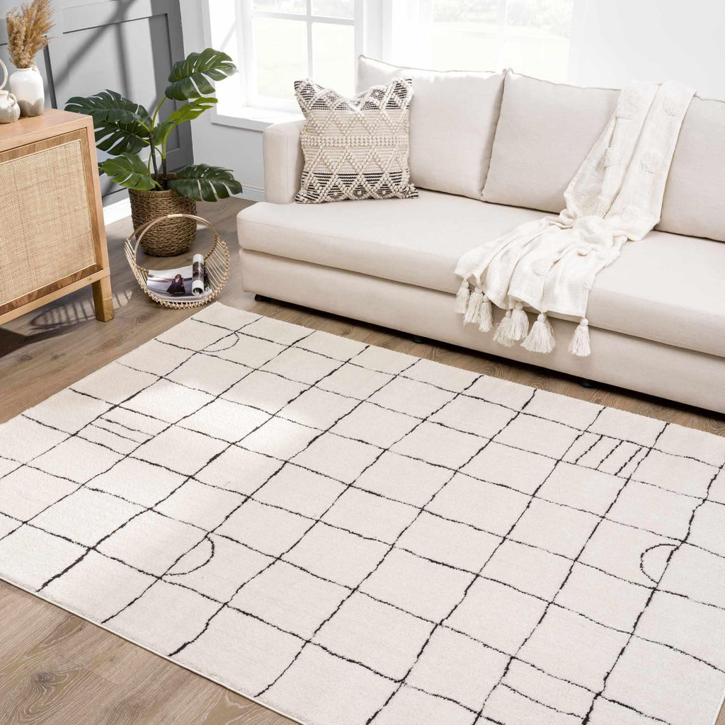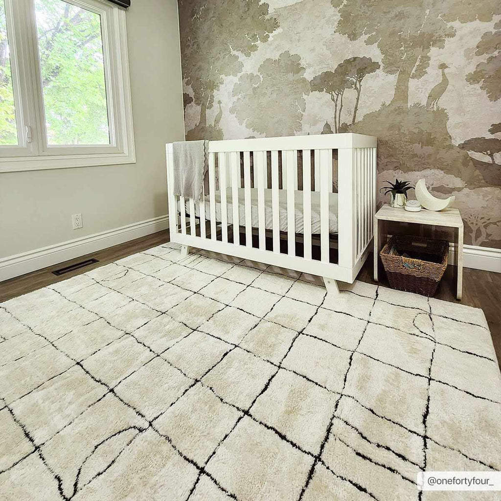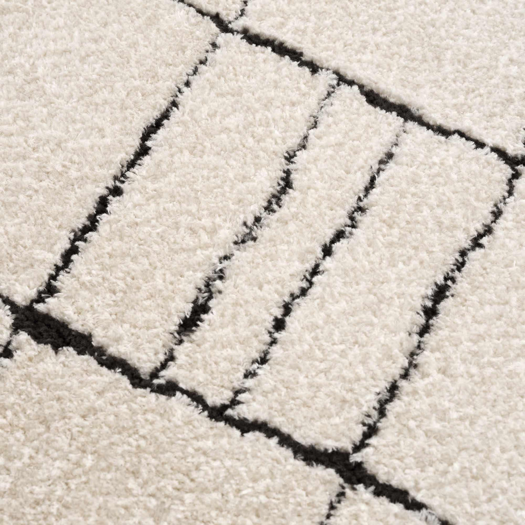 Keanu rug boasts a hand-drawn design with a natural grid pattern and fun geometric elements, adding effortless style to any space. It's a versatile piece that can serve as a minimalist foundation or be layered for an eclectic look.