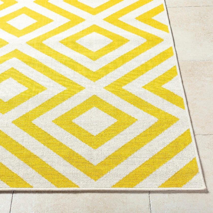 Bring a touch of Scandinavian modern style to your outdoor space with this Maya area rug. This machine-woven piece is crafted from Olefin, making it an excellent option for use in high traffic areas and even outdoors. Its no pile construction makes it easy to maintain and perfect for places where sand and dirt can accumulate. For added stability, we recommend using a rug pad underneath the Maya rug (sold separately). To keep it looking its best, simply hose off with water and hang to dry. With its contemporary design, this area rug will be the perfect addition to your outdoor living space.