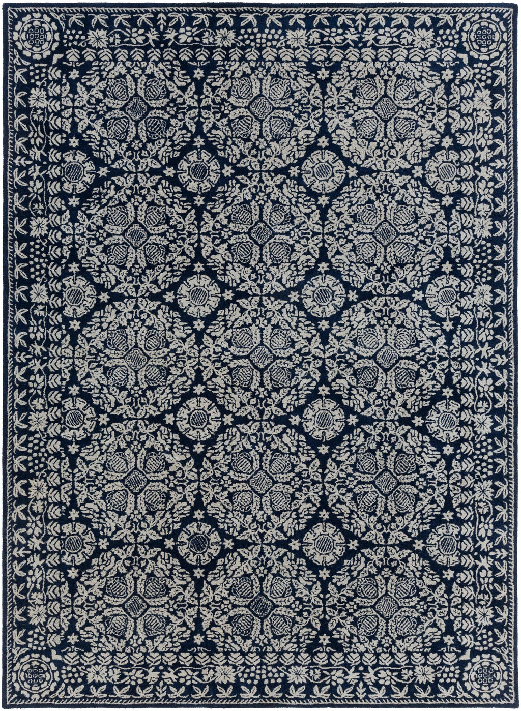 The Smithsonian Collection showcases traditional inspired designs that exemplify timeless styles of elegance, comfort, and sophistication. With their hand tufted construction, these rugs offer an affordable alternative to other handmade constructions while preserving the same natural demeanor and charm. Made with NZ Wool in India, and has Medium Pile. Spot Clean Only, One Year Limited Warranty.