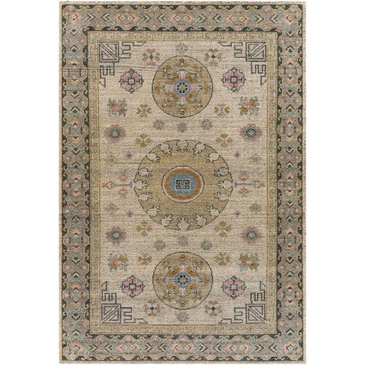 The Smyrna Collection showcases traditional inspired designs that exemplify timeless styles of elegance, comfort, and sophistication. With their hand knotted construction, these rugs provide a durability that can not be found in other handmade constructions, and boasts the ability to be thoroughly cleaned as it contains no chemicals that react to water, such as glue. Made with Wool in India, and has Low Pile. Spot Clean Only, One Year Limited Warranty.