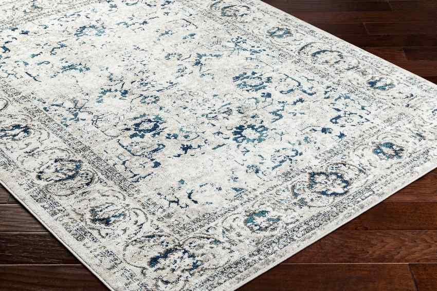 - Colors: Cobalt, Teal, Light Gray, Medium Gray, Ivory