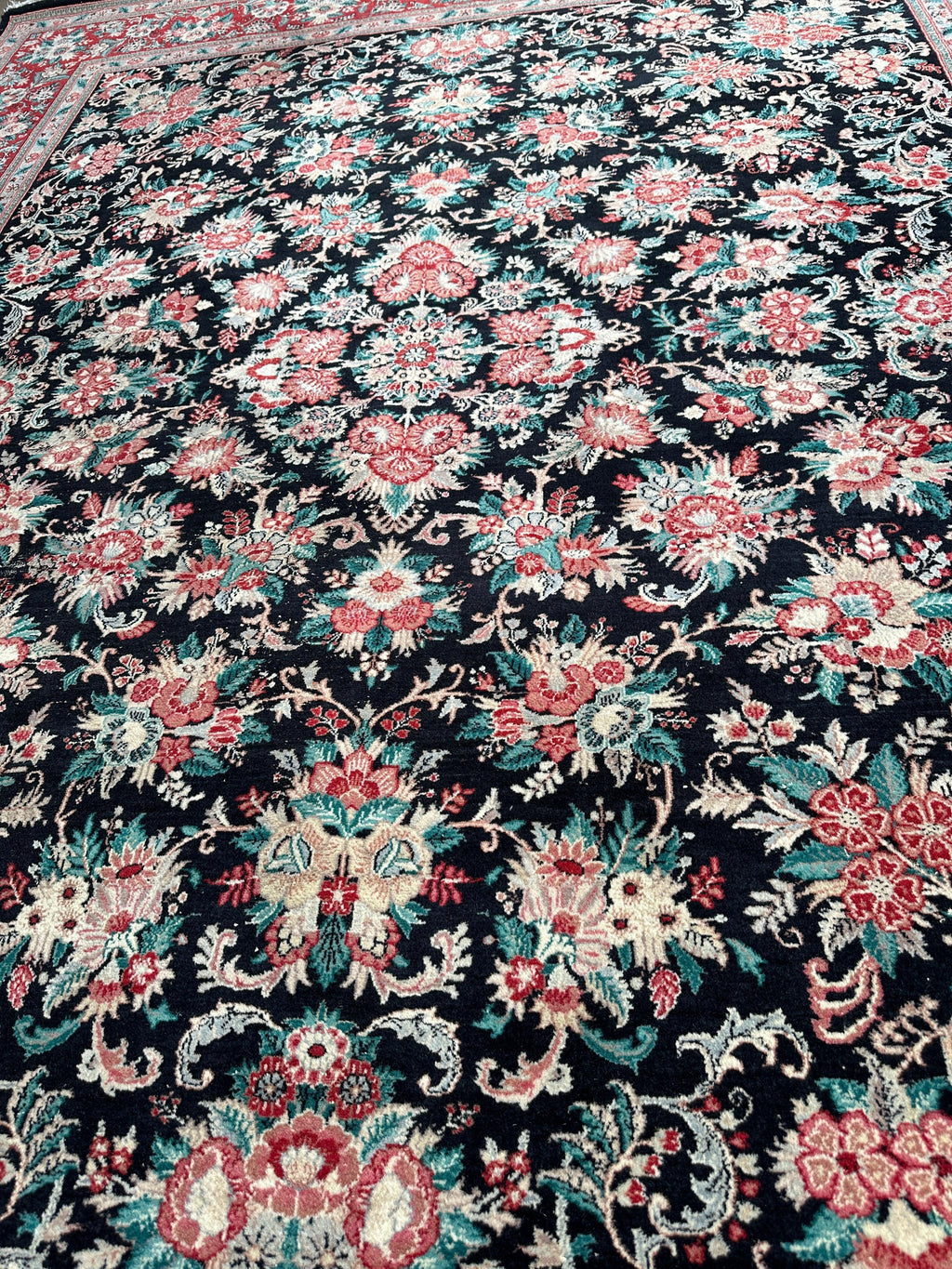 Materials: Hand-knotted handspun wool pile on cotton foundation. Natural dyes.